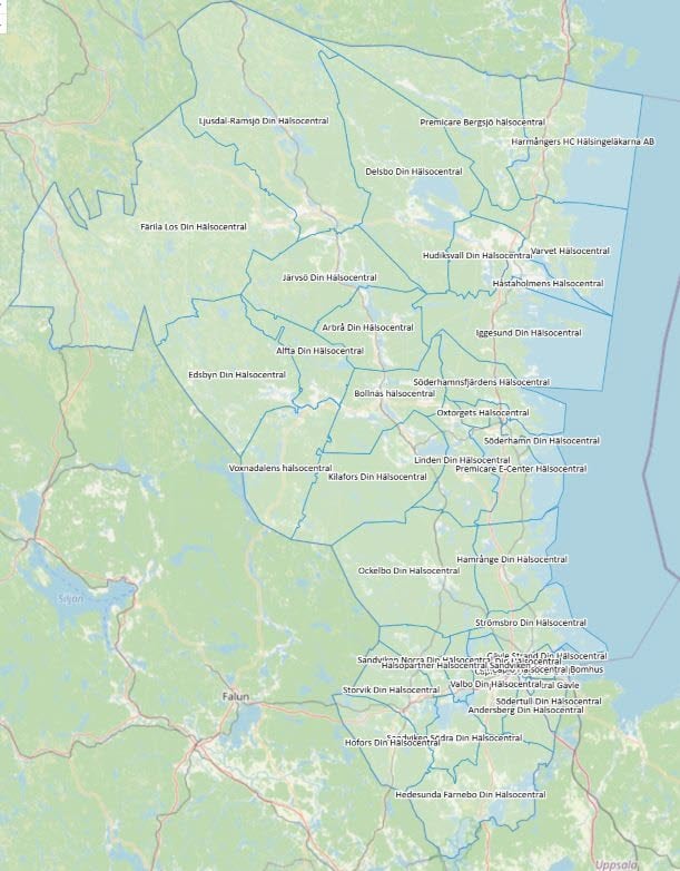 Hälsocentraler och barnavårdscentraler (BVC) inom Hälsoval Gävleborg. Kontaktuppgifter och områdeskartor för upptagningsområde.